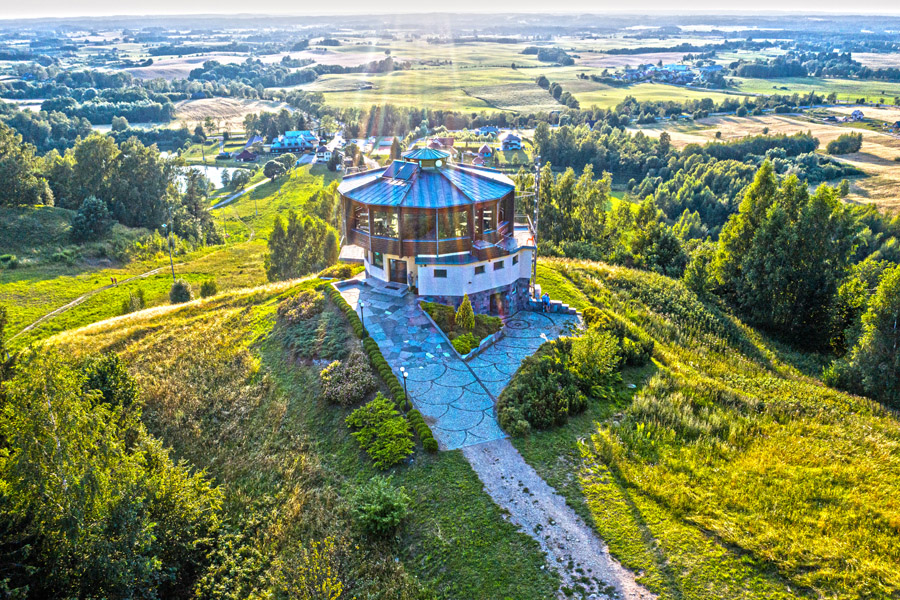Piąty etap naszej wycieczki rozpoczniemy w Węgorzewie, miasteczku należącym do krainy Wielkich Jezior Mazurskich, połączonym z jeziorem Mamry i Kanałem Węgorzewskim. W Węgorzewie znajduje się port jachtowy i przystań pasażerska. Można tutaj zwiedzić zabytkowy zamek krzyżacki z XIV w., Muzeum Tradycji Kolejnictwa, Muzeum Kultury Ludowej z niewielkim skansenem oraz kościół św. Piotra i Pawła z najstarszymi na Mazurach organami. Za Węgorzewem szlak wkracza w krainę rzeki Węgorapy która charakteryzuje się niemal zupełnym brakiem jezior, a w krajobrazie dominują rozległe pola i lasy oraz niewielkie mazurskie miejscowości. To królestwo bocianów, żurawi i bobrów. Trasa jest lekko pofałdowana i prowadzi dawnym torowiskiem kolejowym. Za wsią Banie Mazurskie wjeżdżamy do krainy Mazur Garbatych, zwanych także Dzikimi Mazurami. Krajobraz tego obszaru został ukształtowany przez lodowiec, stąd tak charakterystyczne wzgórza morenowe, wśród których leżą jeziora. Na tym odcinku występują liczne podjazdy i zjazdy, na co należy przygotować się kondycyjnie. Szlak wiedzie głównie wydzielonymi drogami gruntowymi. Dzisiejszy etap zakończymy przy Centrum Sportowo – Rekreacyjnym Piękna Góra, położonym 3 kilometry od centrum Goldapi. To klimatyczne miejsce położone u stóp Gołdapskiej Góry. Znajduje się tutaj obrotowa restauracja i wyciąg krzesełkowy (zimą dzialają także wyciągi narciarskie). Można wziąć udział w Bezkrwawym Safari w parku dzikich zwierząt, popłynąć gondolą po okolicznych stawach lub wjechać rowerem po torze saneczkowym na szczyt góry, skąd roztacza się rozległa panorama Puszczy Rominckiej i okolicznych Szeskich Wzgórz.